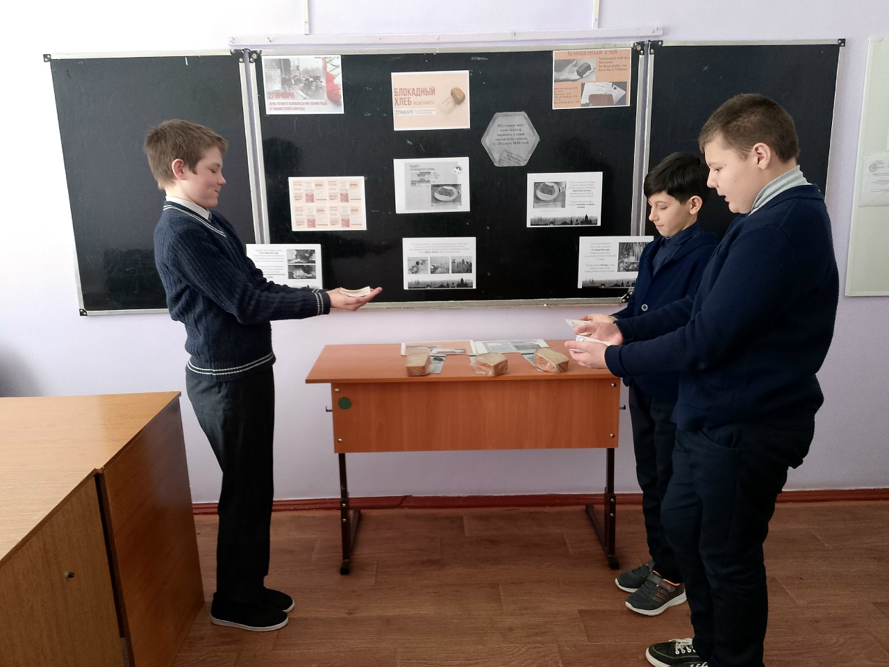 27 января наша школа присоединилась к Всероссийской акции «Блокадный хлеб». Участники акции узнали, что норма выдачи хлеба в блокадном Ленинграде была мала: 250 граммов на работающего человека и 125 граммов на всех остальных. Обучающиеся узнали рецептуру блокадного хлеба, значение хлебной карточки.